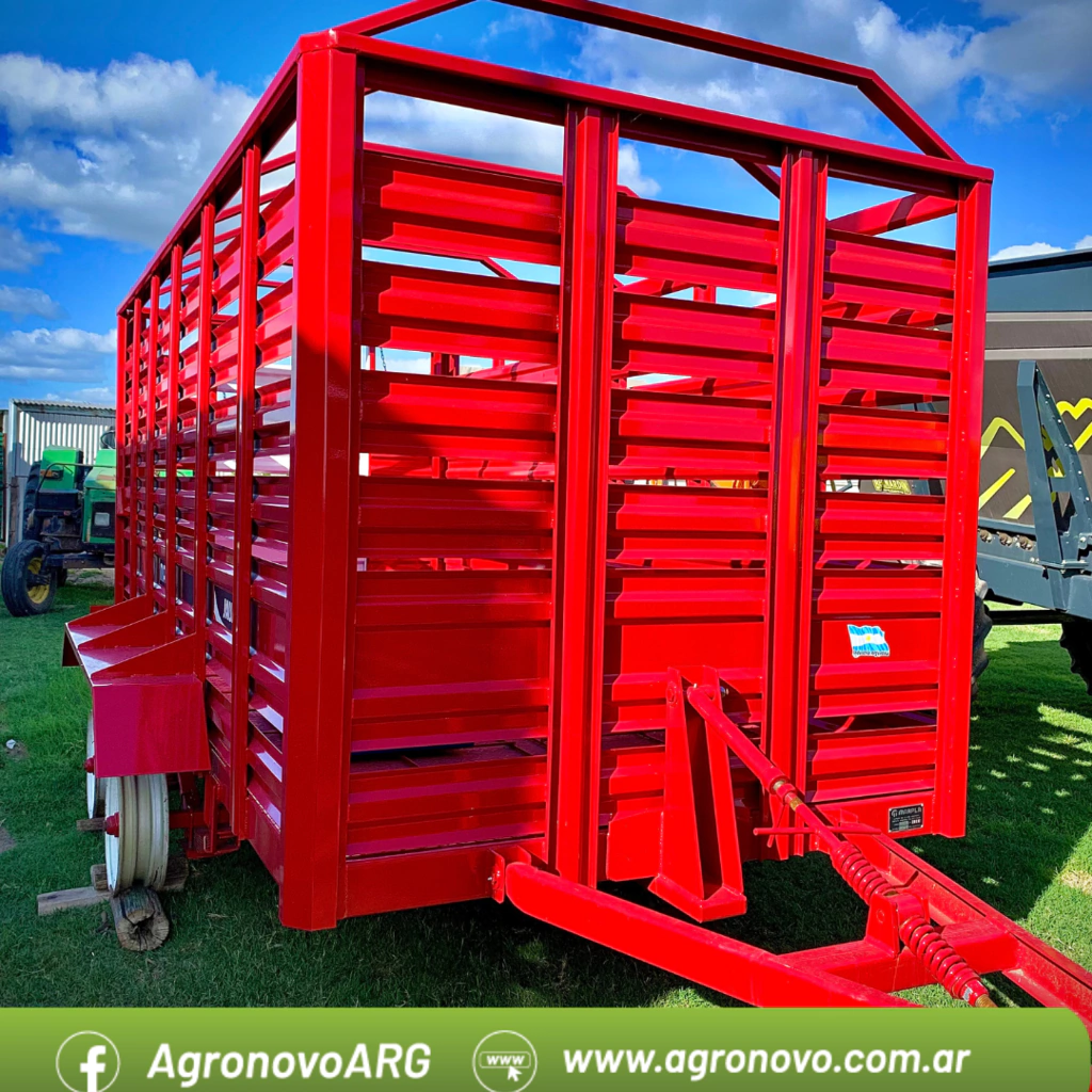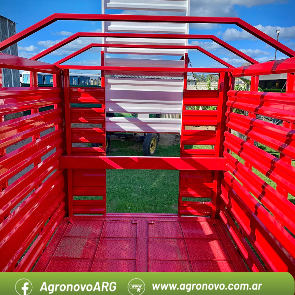 Carro vaquero 4 x 2 Enganche con rotula Puerta trasera guillotina con cadena para levantar y tipo libro Regilla interior Cargador opcional Largo 4 mts Alto 2 mts Ancho 1.8 mts