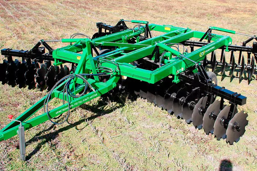 Mediante 4 cilindros hidráulicos incorporados con mangueras hasta el tractor.
